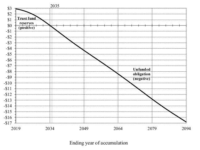 “Steadily worsening annual balances and cumulative values toward the end of the 75-year period provide an indication of the additional change that will be needed by that time in order to maintain solvency beyond 75 years. Consideration of summary measures alone for a 75‑year period can lead to incorrect perceptions and to policy prescriptions that do not achieve sustainable solvency.” – SSI 2020 Report