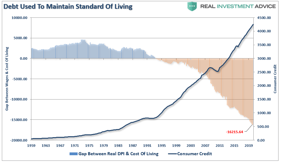 Such an inability to fill the gap between the incomes and the “cost of living,” which is evident given the surge in debt, continues to give rise to financial and lifestyle concerns. As noted: